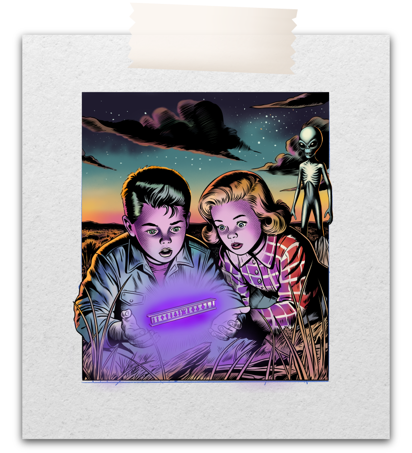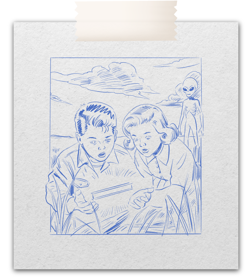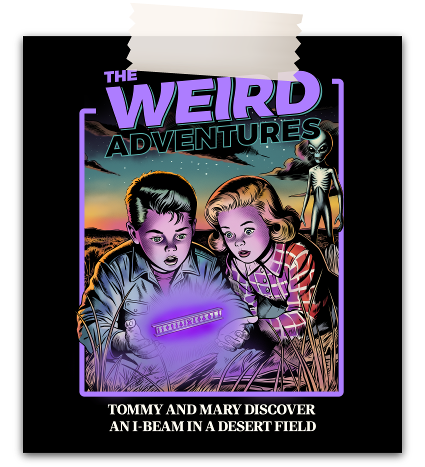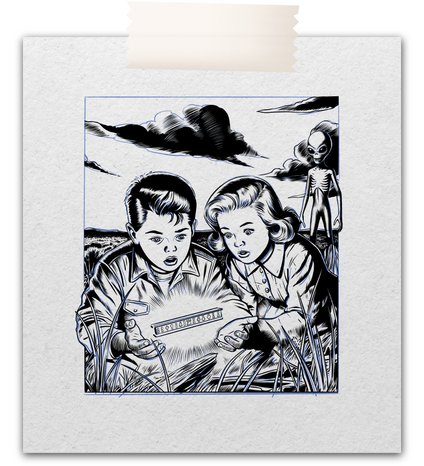 WEIRD puise ses racines dans les années 50, une période marquée par Roswell, les vagues d’observations d’OVNIs et les histoires de “petits hommes verts” qui ont marqué la culture populaire et nourri la fascination pour un monde venu des étoiles. C’est aussi l’âge d’or des comics pulp et du cinéma de science-fiction, avec des couleurs éclatantes, leurs intrigues étranges et leurs ambiances mystérieuses.